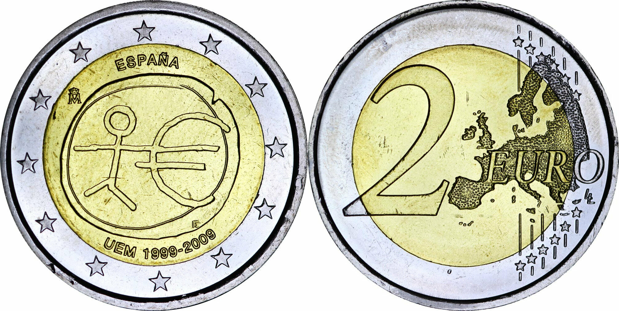 Испания 2 евро, 2009 10 лет монетарной политики ЕС (EMU) и введения евро XF
