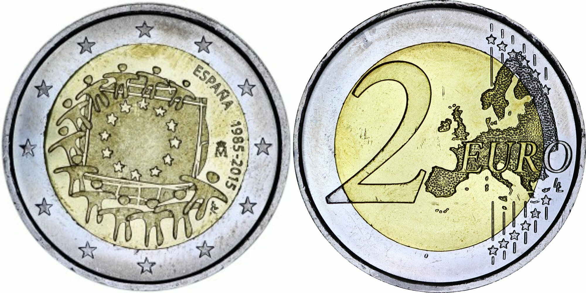 Испания 2 евро, 2015 30 лет флагу Европейского союза aUNC