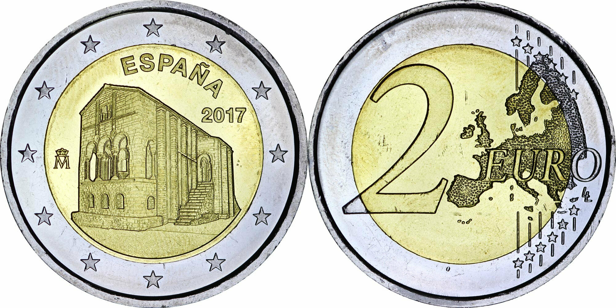 Испания 2 евро, 2017 ЮНЕСКО - Церковь Санта-Мария-дель-Наранко в Овьедо UNC