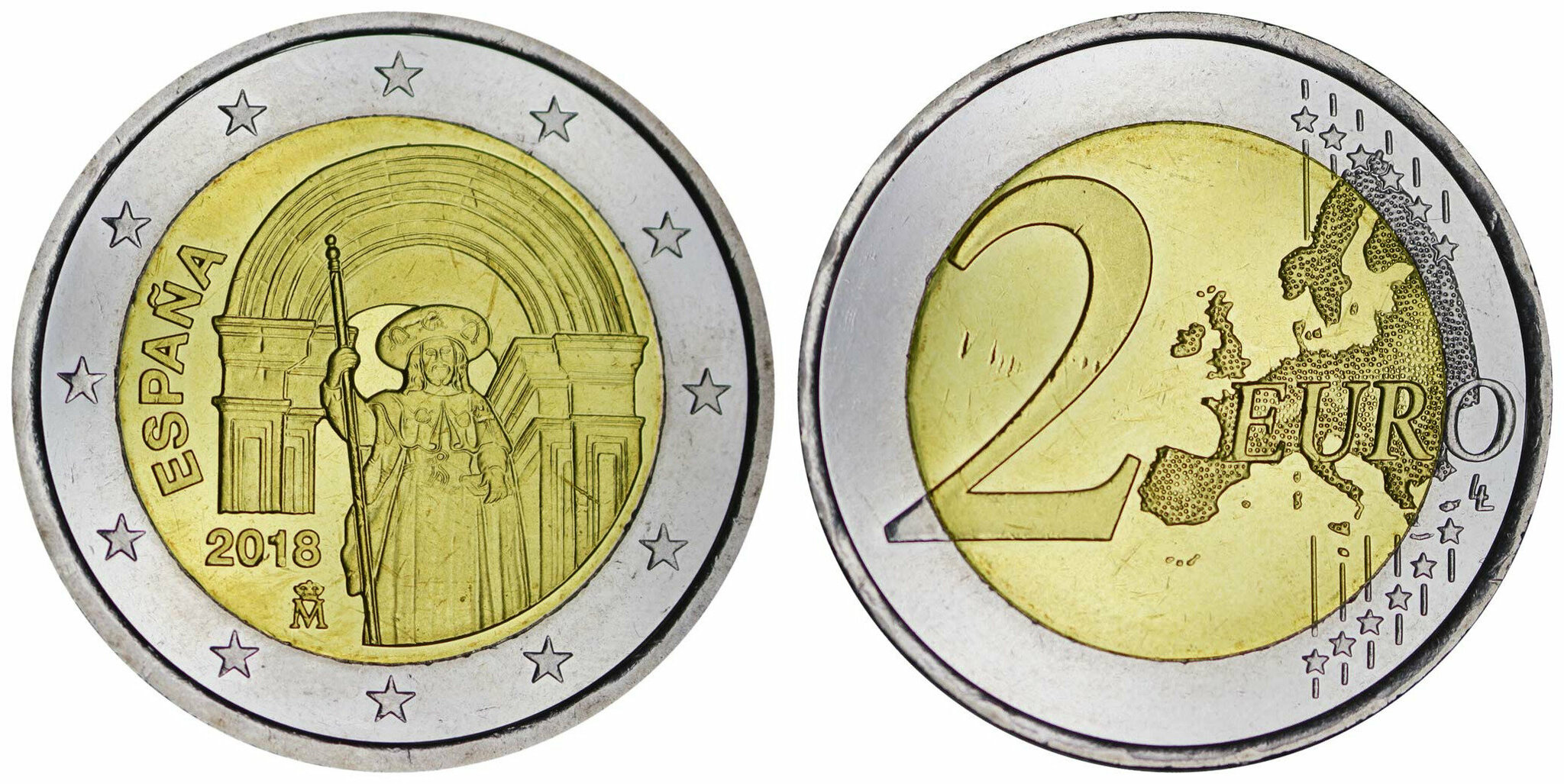Испания 2 евро, 2018 ЮНЕСКО - Сантьяго-де-Компостела аUNC