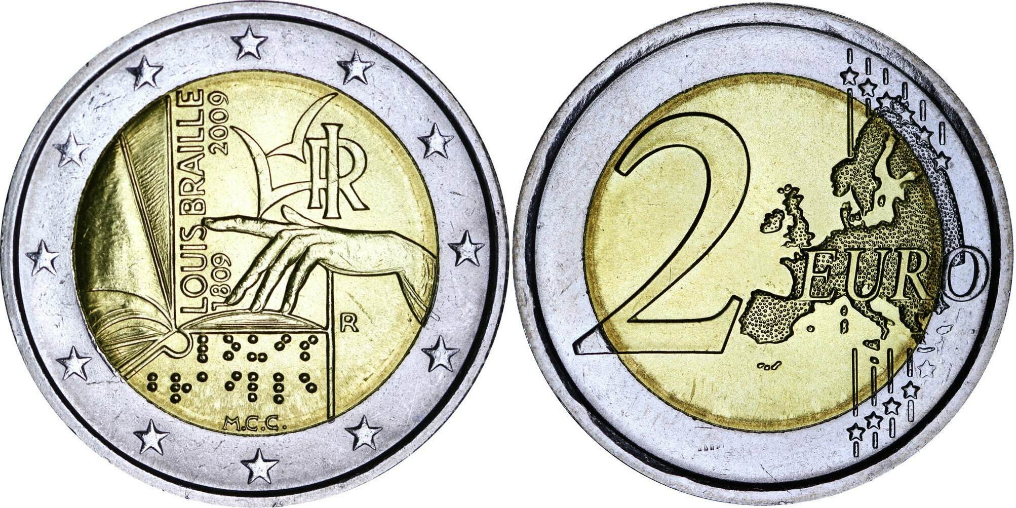 Италия 2 евро, 2009 200 лет со дня рождения Луи Брайля XF
