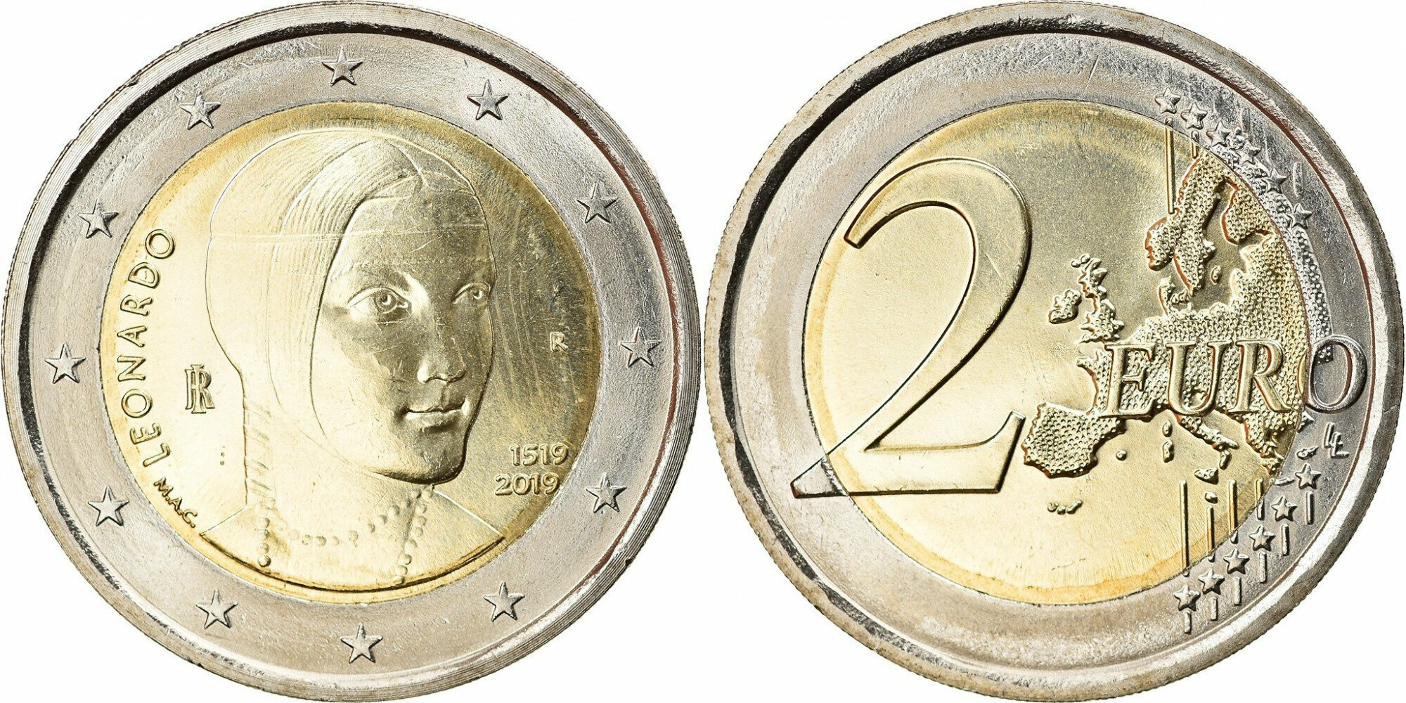 Италия 2 евро, 2019 500 лет со дня смерти Леонардо да Винчи UNC