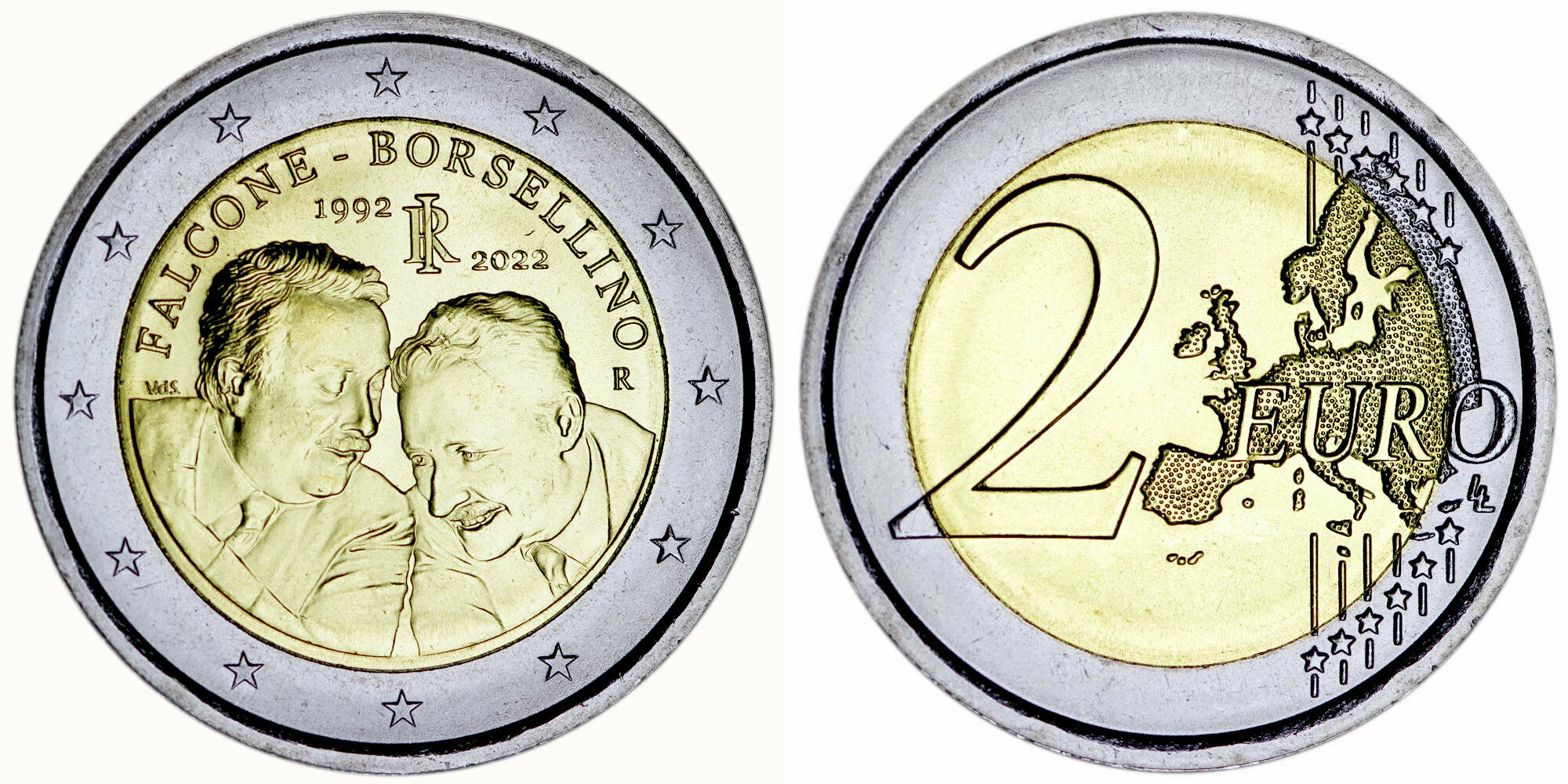 Италия 2 евро, 2022 30 лет со дня смерти судей Джованни Фальконе и Паоло Борселлино UNC