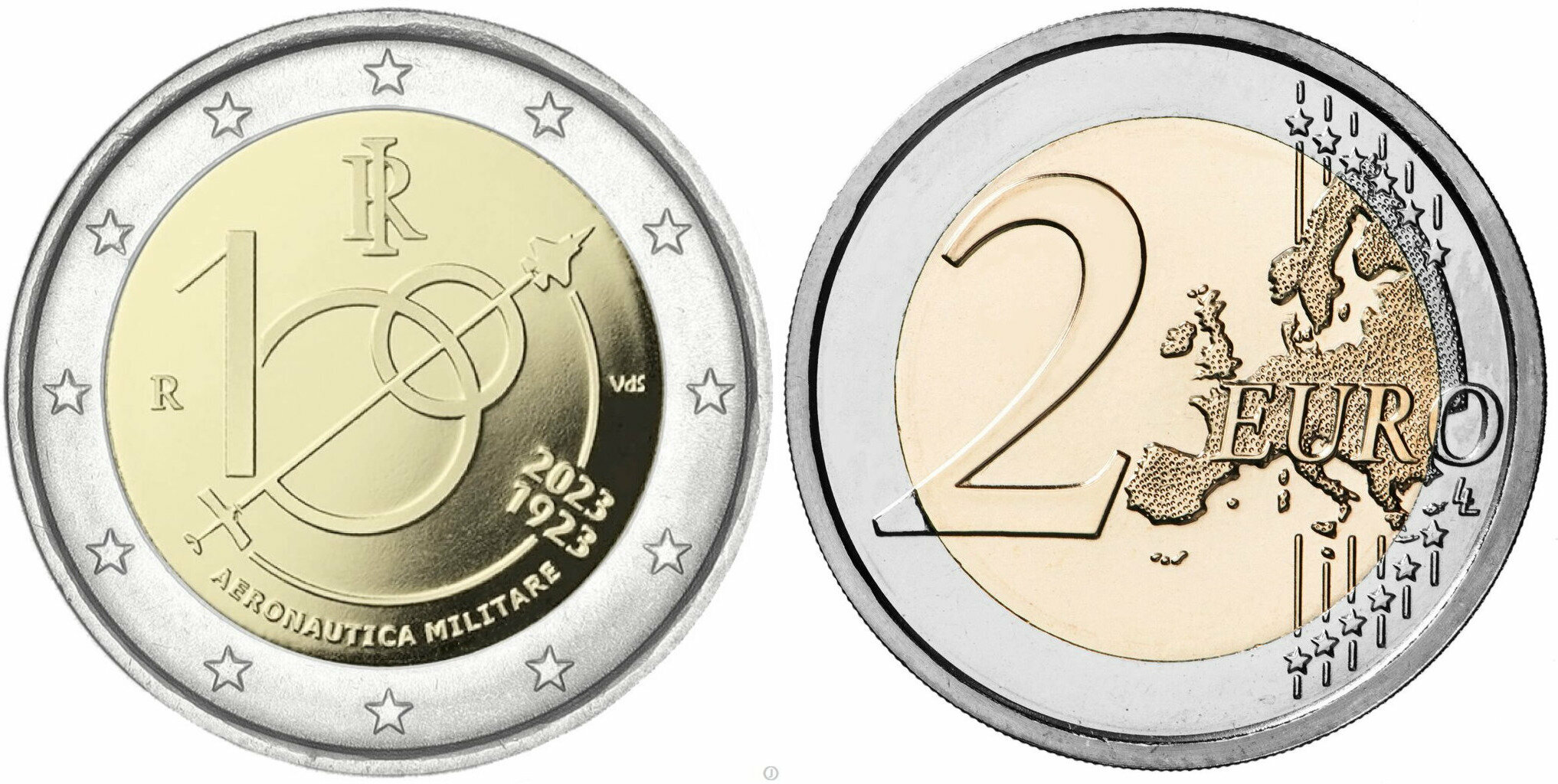 Италия 2 евро 2023 100 лет Военно-воздушным силам