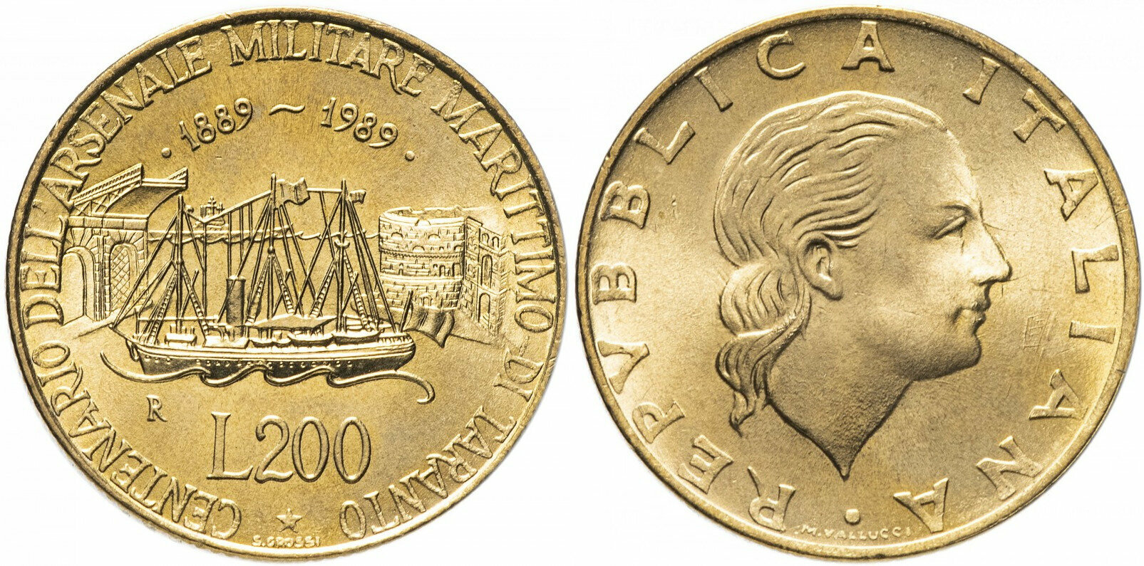 Италия 200 лир, 1989 100 лет морской военной базе в Таранто