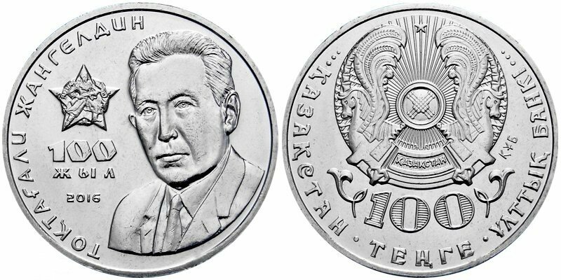 Казахстан 100 тенге, 2016 100 лет со дня рождения Токтагали Жангельдина