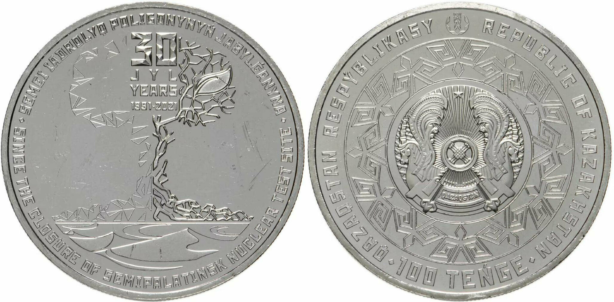 Казахстан 100 тенге, 2021 30 лет закрытию Семипалатинского ядерного полигона