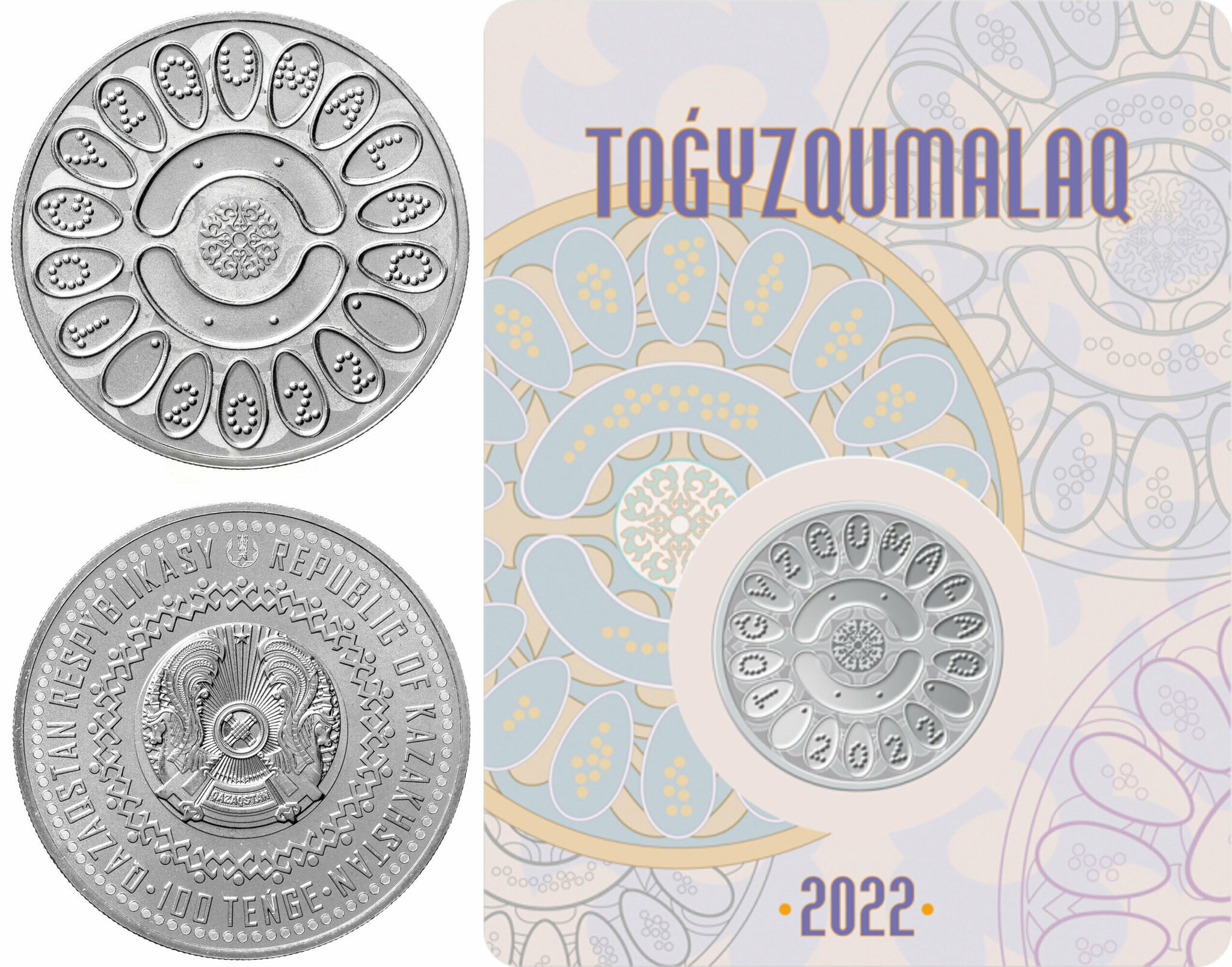 Казахстан 100 тенге, 2022 Тогыз кумалак 33 мм в блистере