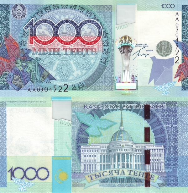 Казахстан 1000 тенге 2010 Стилизованные птицы UNC