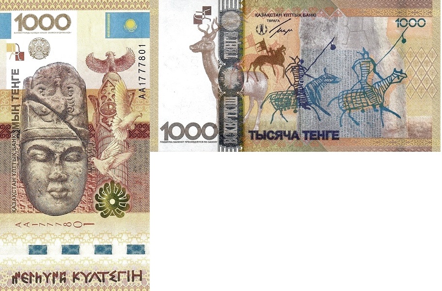 Казахстан 1000 тенге 2013 Наскальные рисунки тюркских воинов UNC