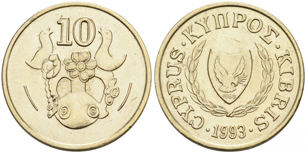 Кипр 10 центов, 1991 - 2004 Ваза XF