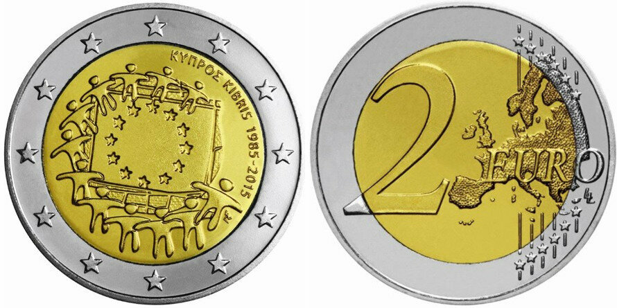 Кипр 2 евро 2015 30 лет флагу Европейского союза UNC