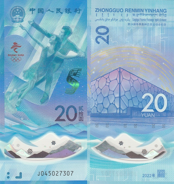 Китай 20 юаней 2022 Стадион для катания на коньках UNC