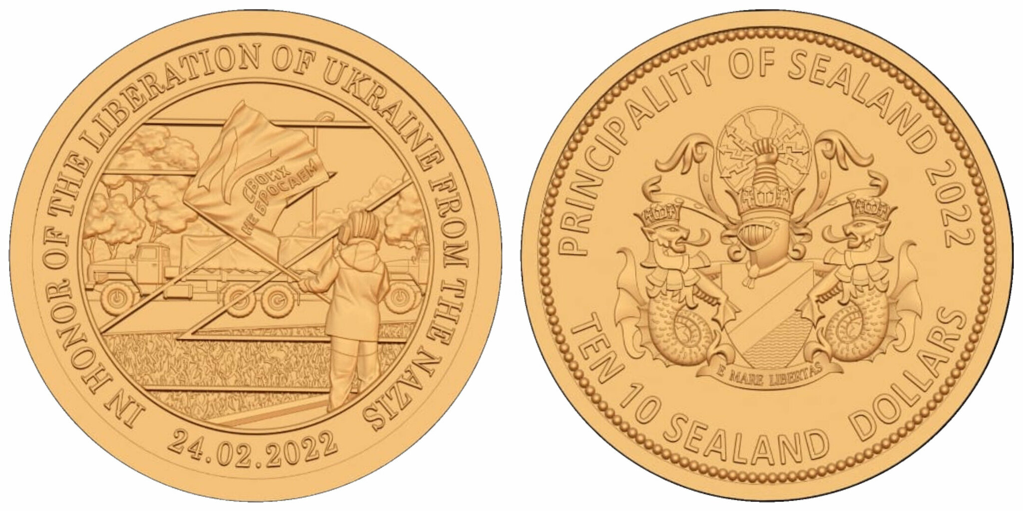 Княжество Силенд 10 долларов 2022 # 3 Мальчик Алёша, встречает с флагом