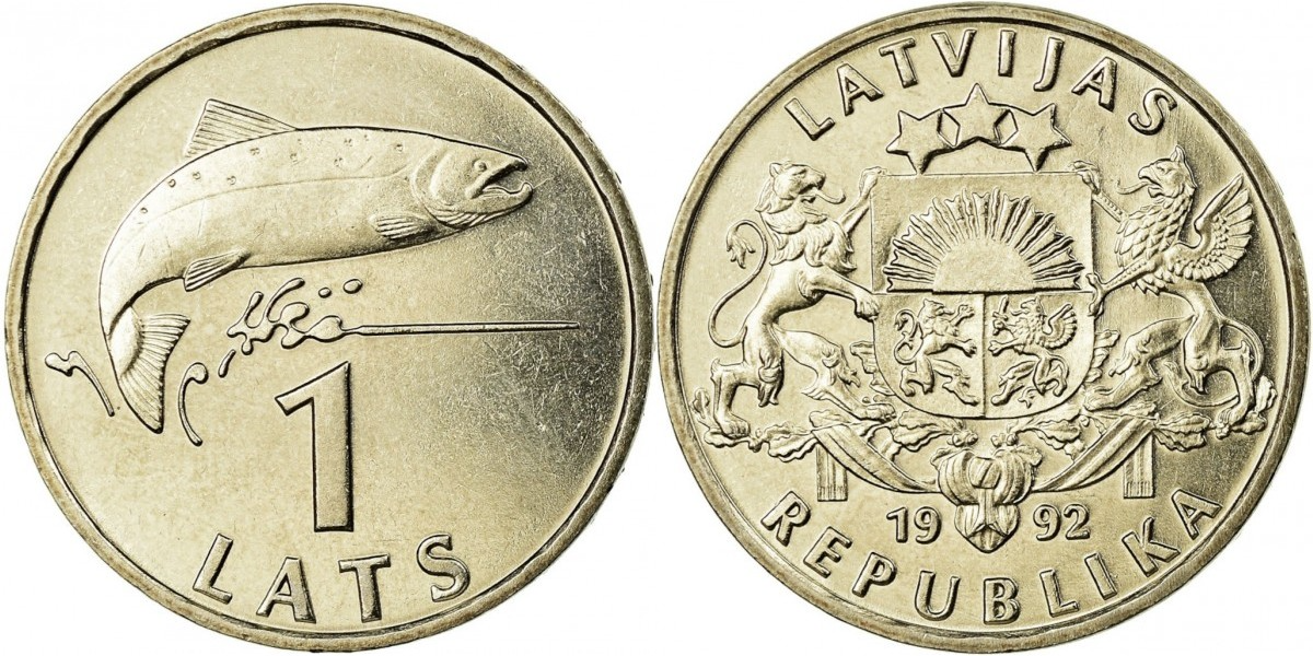 Латвия 1 лат, 1992 - 2008 Лосось XF