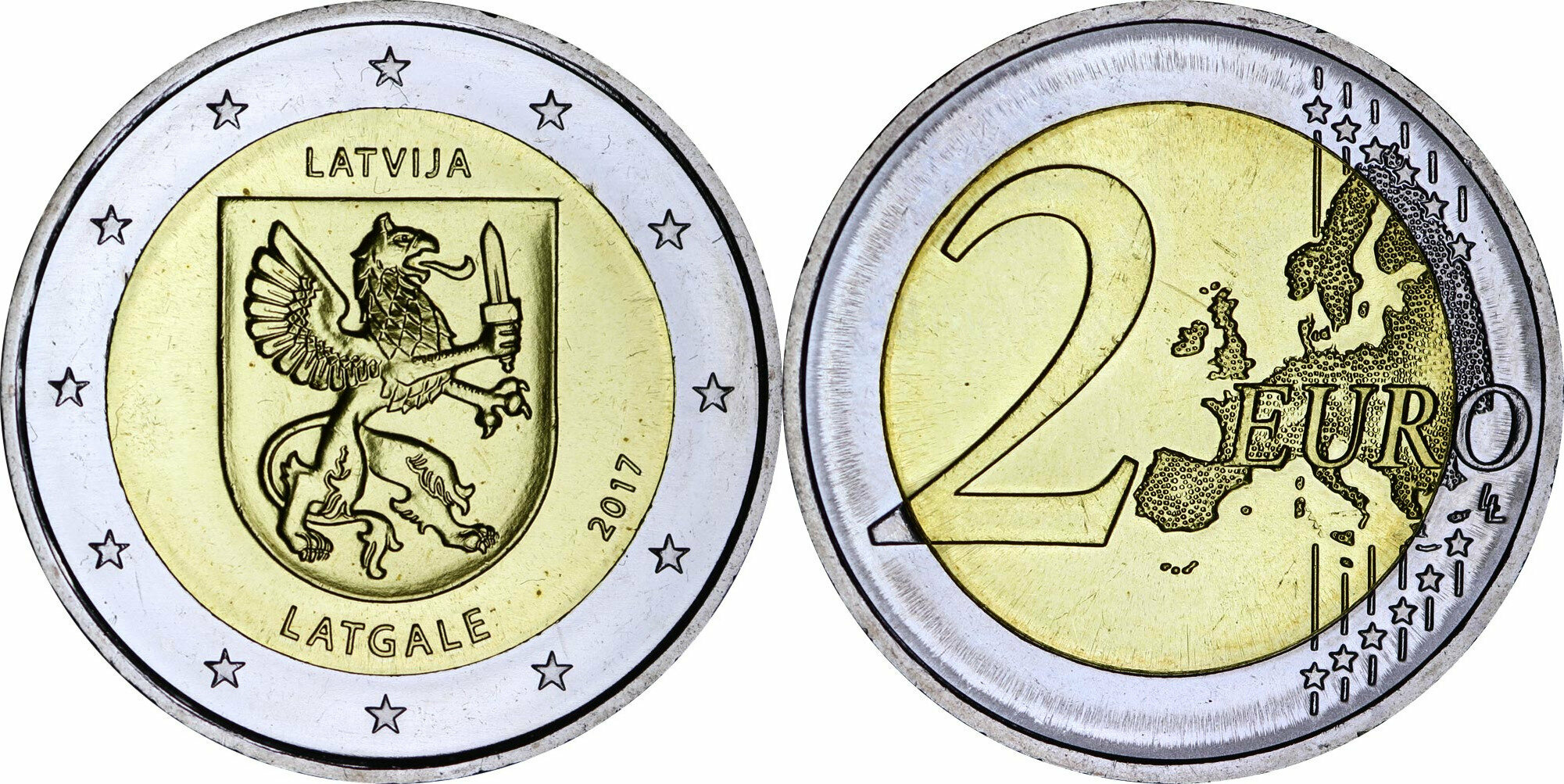 Латвия 2 евро, 2017 Исторические области Латвии - Латгалия UNC