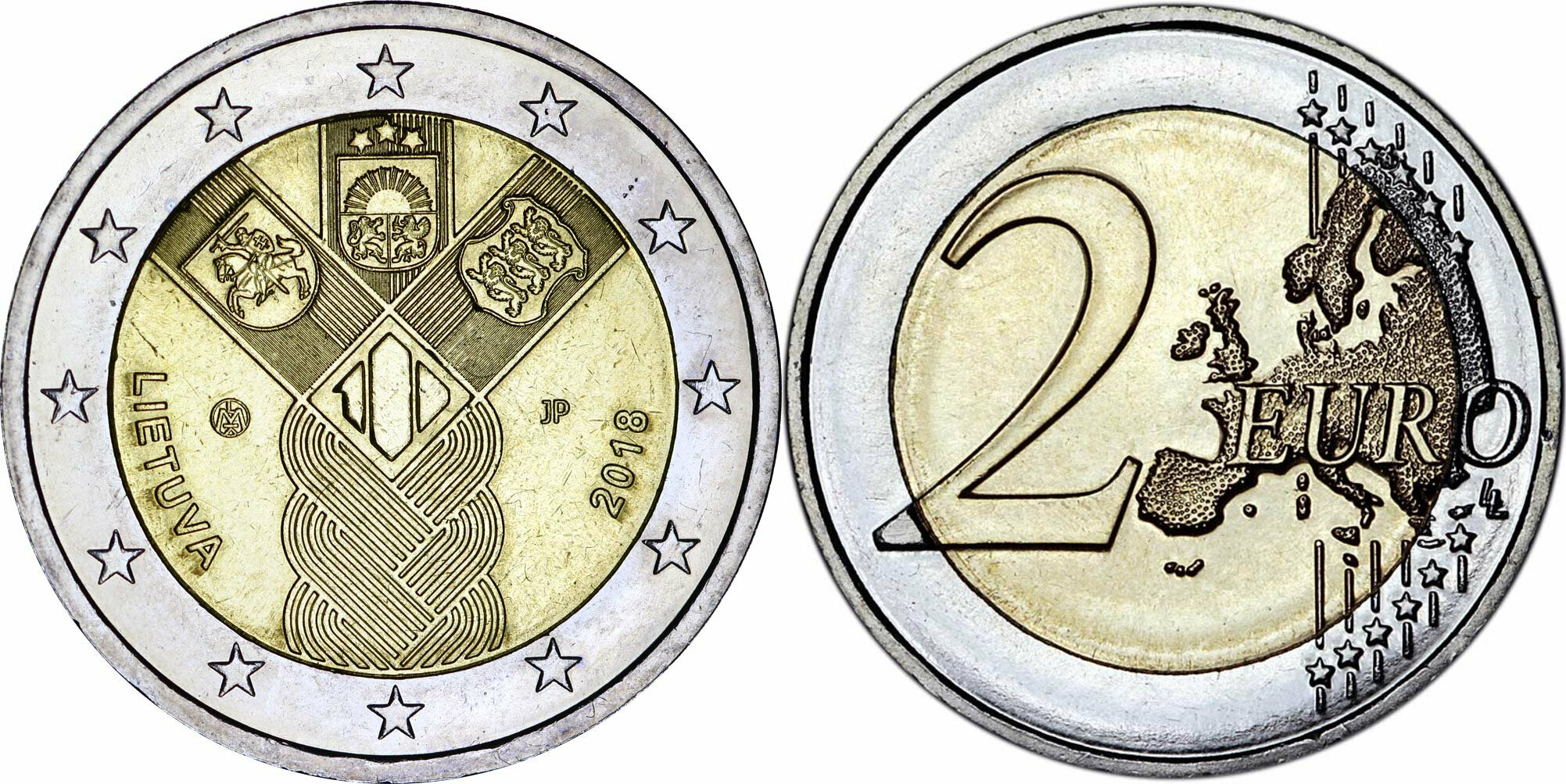 Литва 2 евро, 2018 100 лет государствам Балтики XF