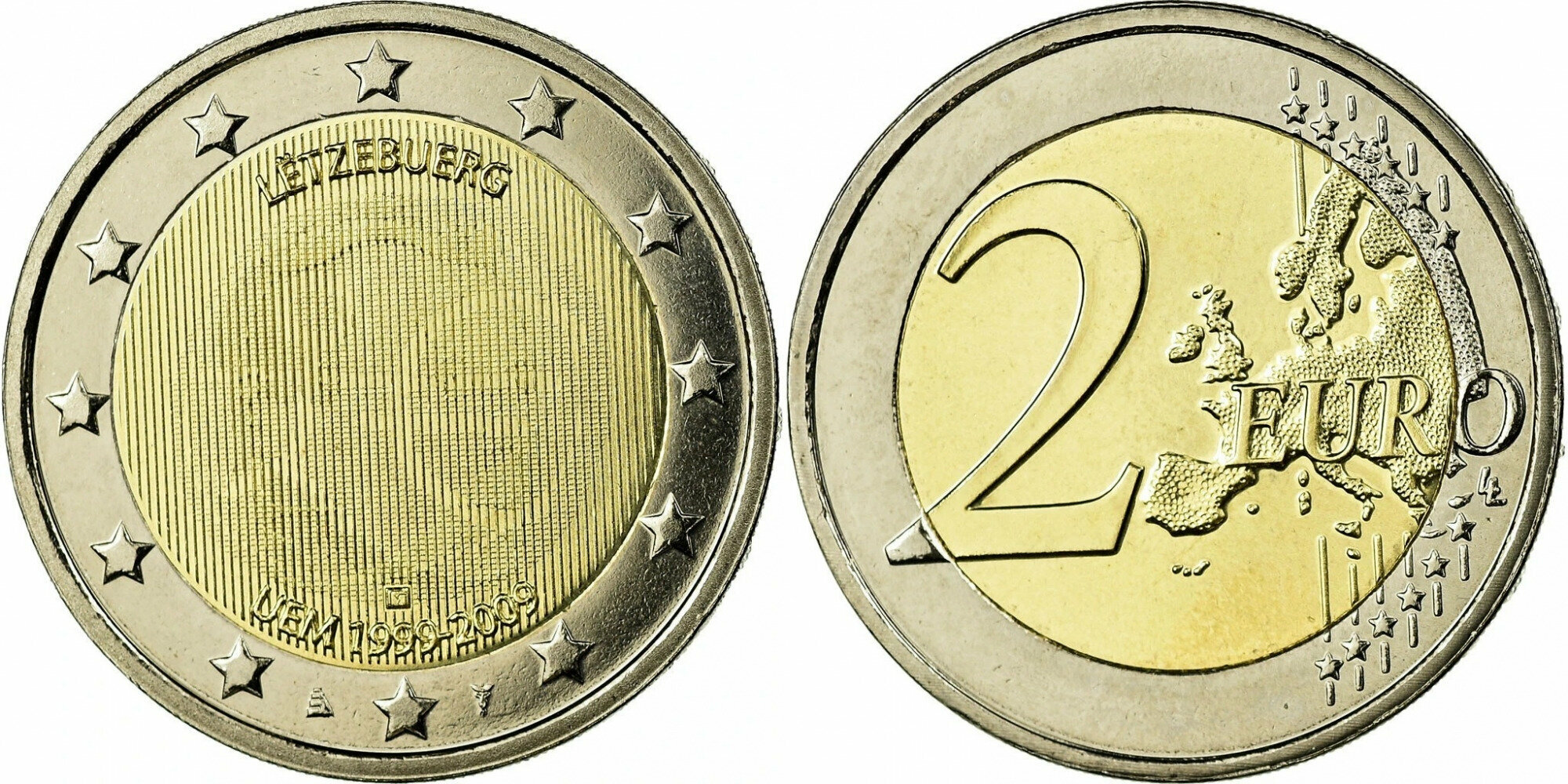 Люксембург 2 евро, 2009 10 лет монетарной политики ЕС (EMU) и введения евро aUNC