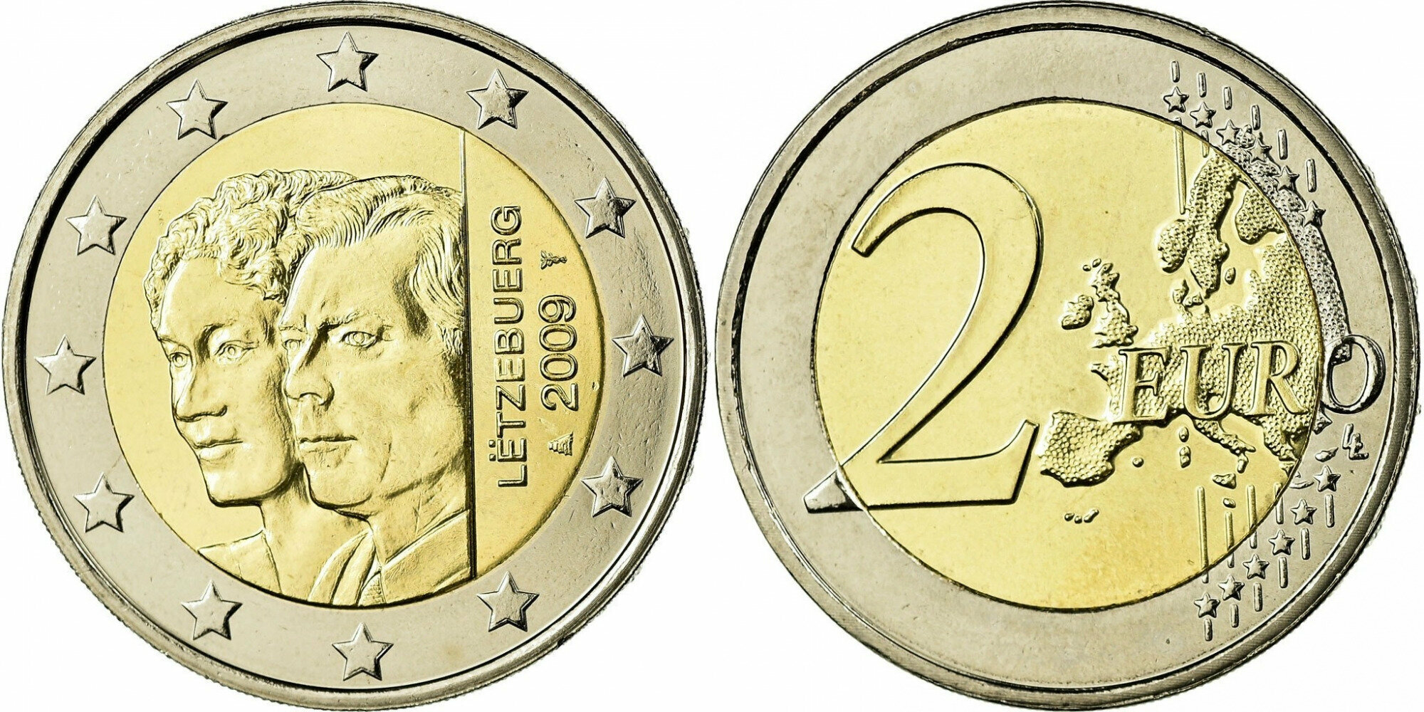 Люксембург 2 евро, 2009 90 лет вступлению на престол Герцогини Шарлотты UNC
