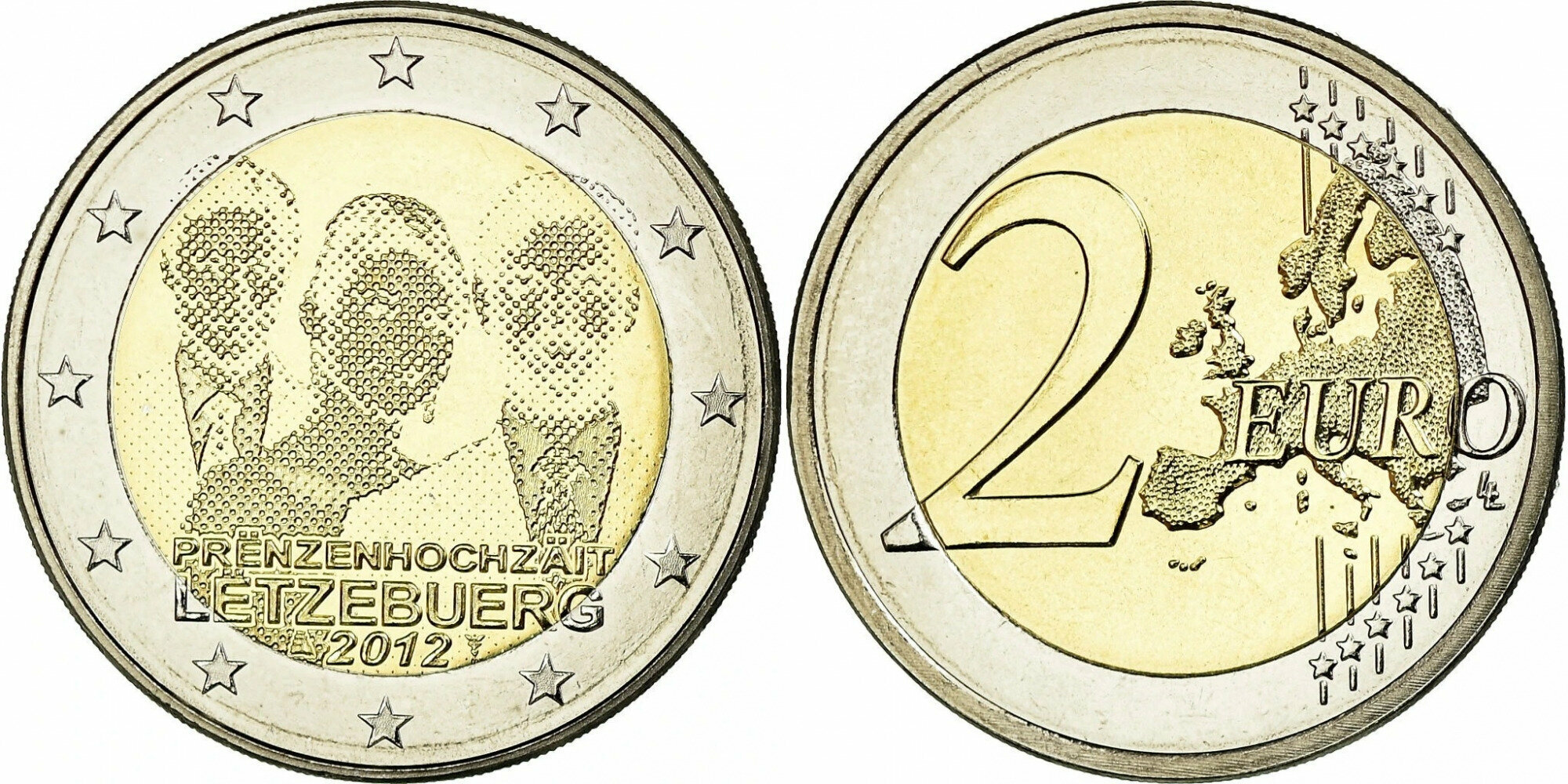 Люксембург 2 евро, 2012 Свадьба Великого герцога Гийома и бельгийской графини Стефании де Ланнуа aUNC