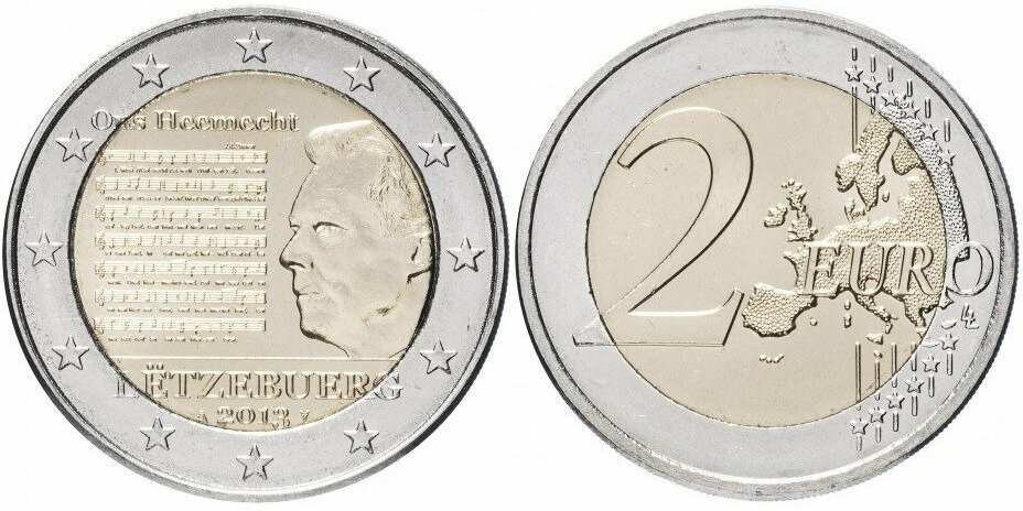 Люксембург 2 евро, 2013 Национальный гимн UNC