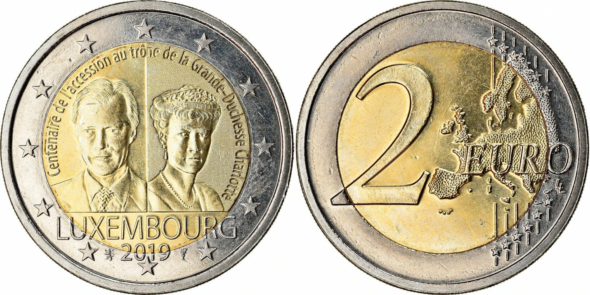 Люксембург 2 евро, 2019 100 лет вступлению на трон Великой Герцогини Шарлотты aUNC