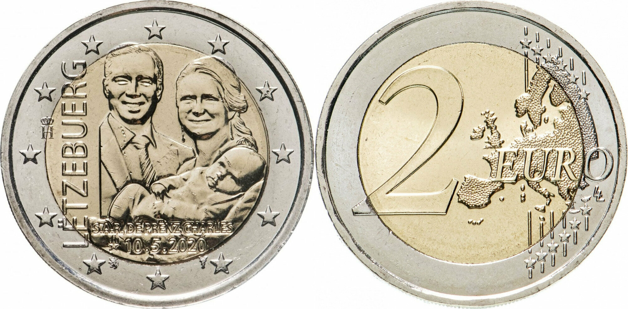 Люксембург 2 евро, 2020 Рождение наследного Великого Герцога Чарльза UNC