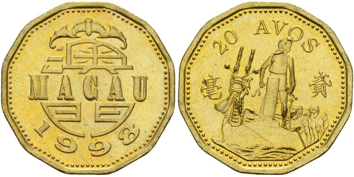 Редкая монета «Макао 20 аво (1993-1998) Летучая мышь XF» – идеальное дополнение к вашей коллекции! Она впечатлит качеством чеканки и редкостью выпуска. Стильный дизайн с изображением символичной летучей мыши подчеркнёт ваш уникальный вкус. Коллекция нумизмата станет ещё престижнее при минимальных вложениях. Подчеркните свою исключительность вместе с уникальной находкой из Макао!
