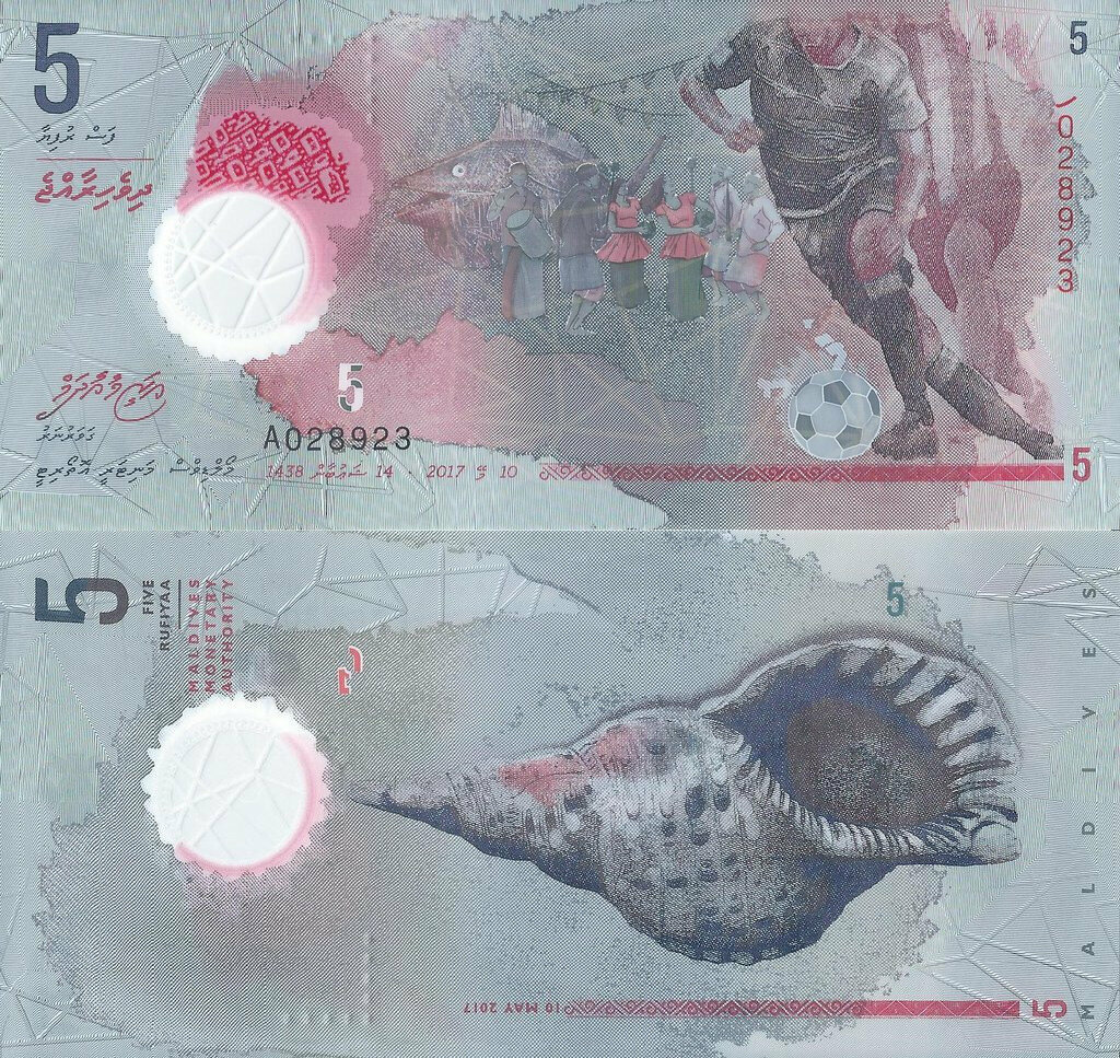 Мальдивы 5 руфий 2017 года P-26 полимер UNC