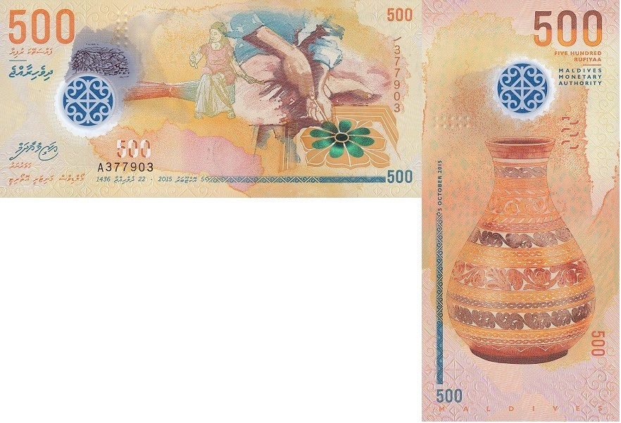 Мальдивы 500 руфия 2015 Традиционная ваза ручной работы с лаковой отделкой UNC