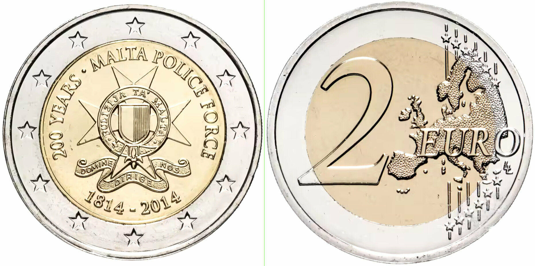 Мальта 2 евро 2014 200 лет полиции Мальты UNC
