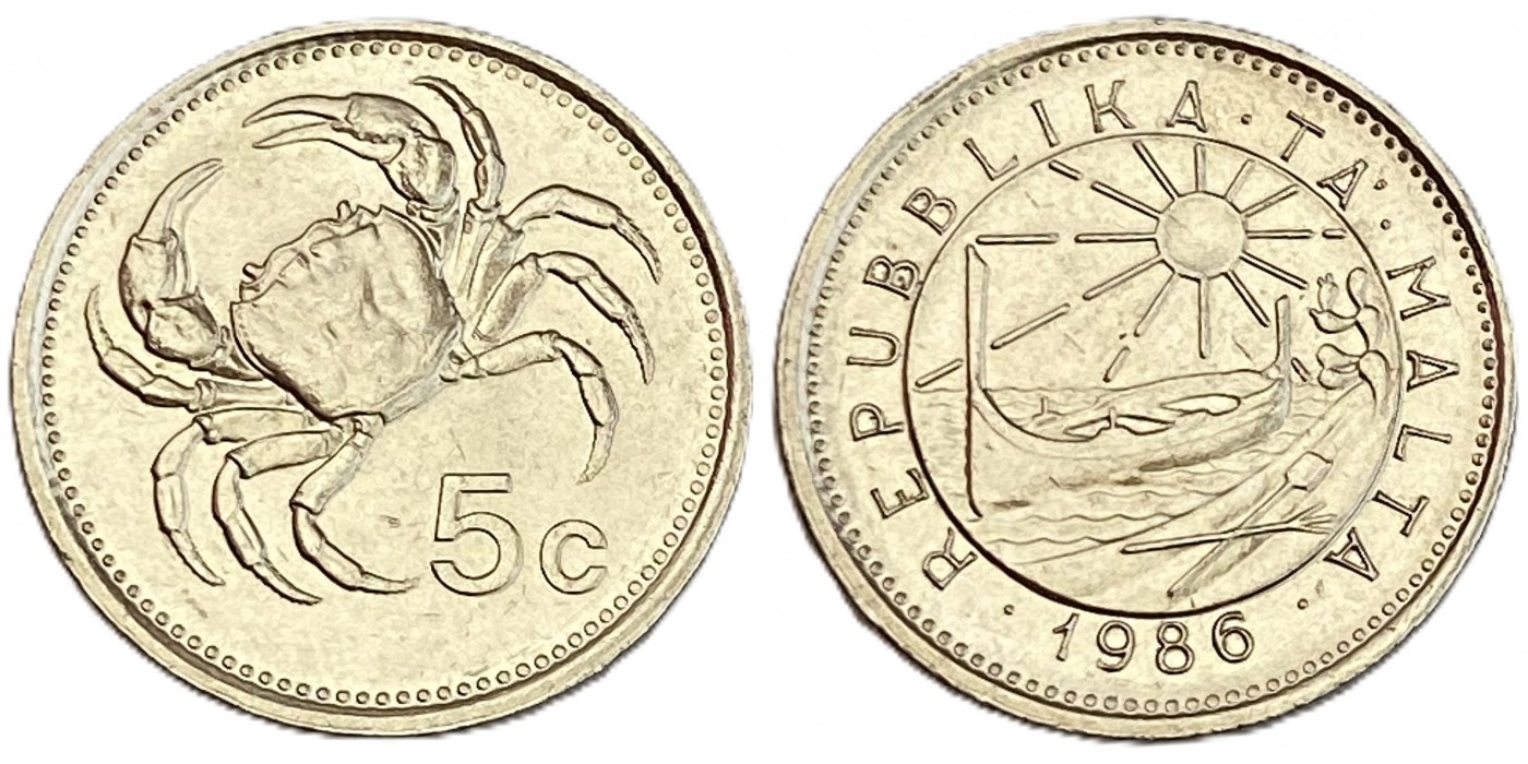 Редкая монета Мальты номиналом 5 центов, чеканки 1986 года – идеальный выбор для вашего нумизмата-коллекции! Отличное состояние (XF), реалистичный краб на аверсе делают её украшением коллекции. Покупка у нас гарантирует подлинность экземпляра, быструю доставку и внимательное отношение к каждому клиенту. Добавьте эксклюзивность вашему собранию вместе с нами!