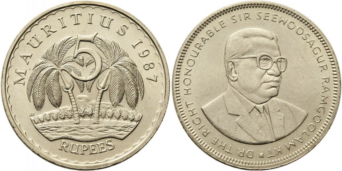 Редкая монета Маврикия 5 рупий (1987-2010) – великолепное пополнение коллекции выдающихся нумизматов! ✅ Высокое качество сохранности XF обеспечивает эстетическое удовольствие при просмотре. ✅ Отличная возможность выгодно вложить средства в перспективные активы будущего! ✅ Уникальная историческая ценность благодаря изображению премьер-министра страны Сивусагура Рамгулама. Подарите себе радость обладания редкостью сегодня!