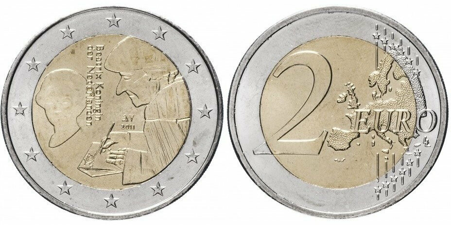Нидерланды 2 евро 2011 500 лет издания книги «Похвала глупости» Эразма Роттердамского XF