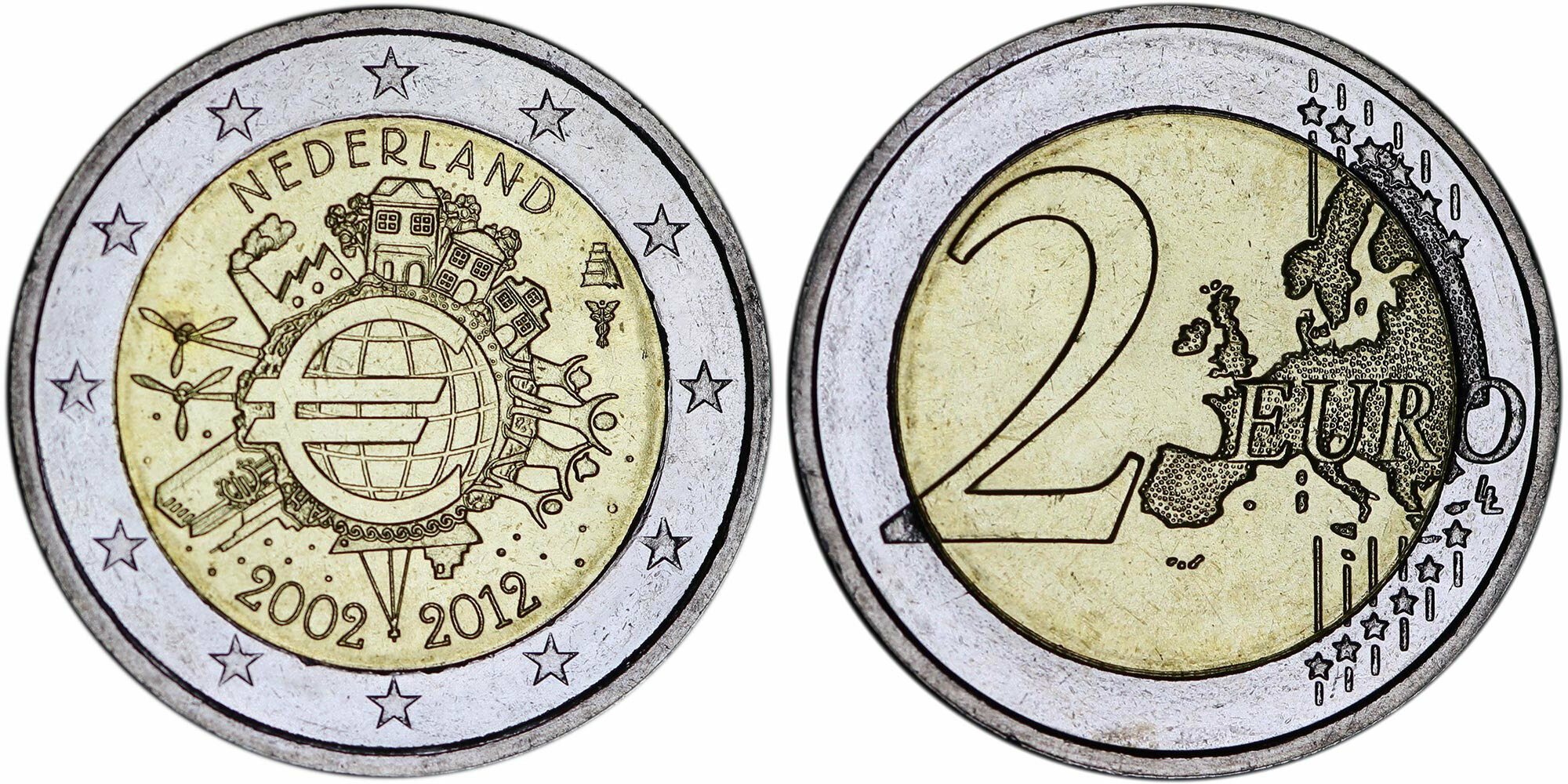 Нидерланды 2 евро 2012 10 лет наличным XF