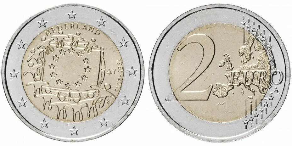 Нидерланды 2 евро 2015 30 лет флагу Европейского союза aUNC