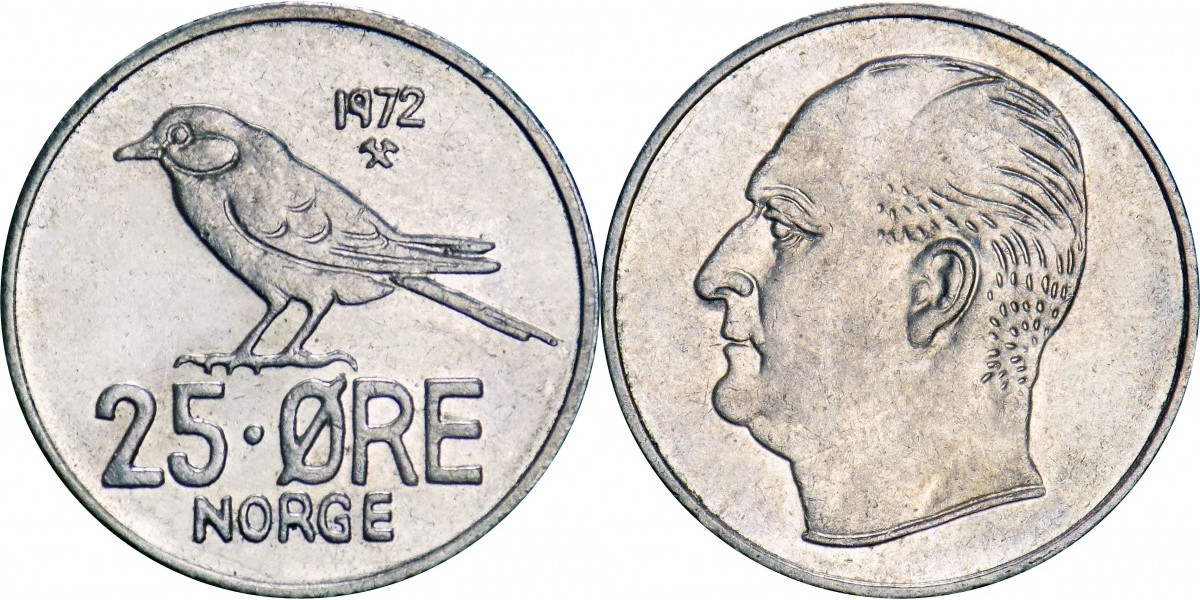 Редкая коллекционная монета Норвегии! 25 эре (1958-1973) с изображением короля Улафа V – идеальное пополнение вашей коллекции нумизмата высокого класса! Монеты качества XF гарантируют отличный внешний вид и сохранность деталей. Изящное оформление, историческая ценность и редкость делают этот лот привлекательным вложением и украшением вашего собрания! Собирайте историю вместе с нами! Покупайте выгодно прямо сейчас!