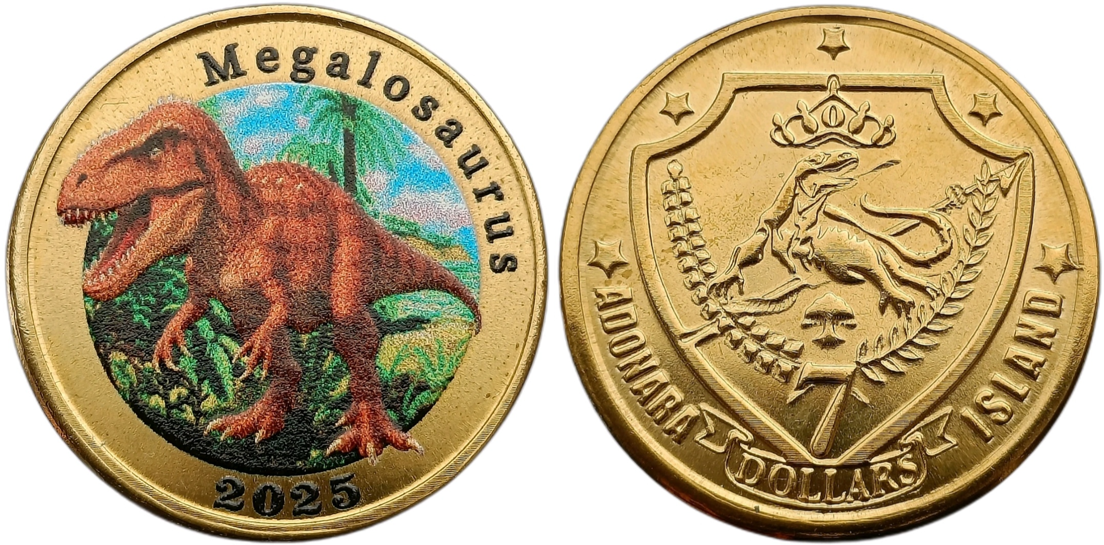 Откройте для себя захватывающий мир нумизматики! Коллекция «Остров Адонара» предлагает уникальную монету с изображением древнего мегалозавра. Уникальный дизайн, высокое качество чеканки и доступная цена – идеальный выбор для начинающих и опытных коллекционеров. Добавьте этот эксклюзивный экземпляр к своей коллекции сегодня всего за 7 долларов и впечатляйте окружающих своим вкусом и знанием редких вещей!