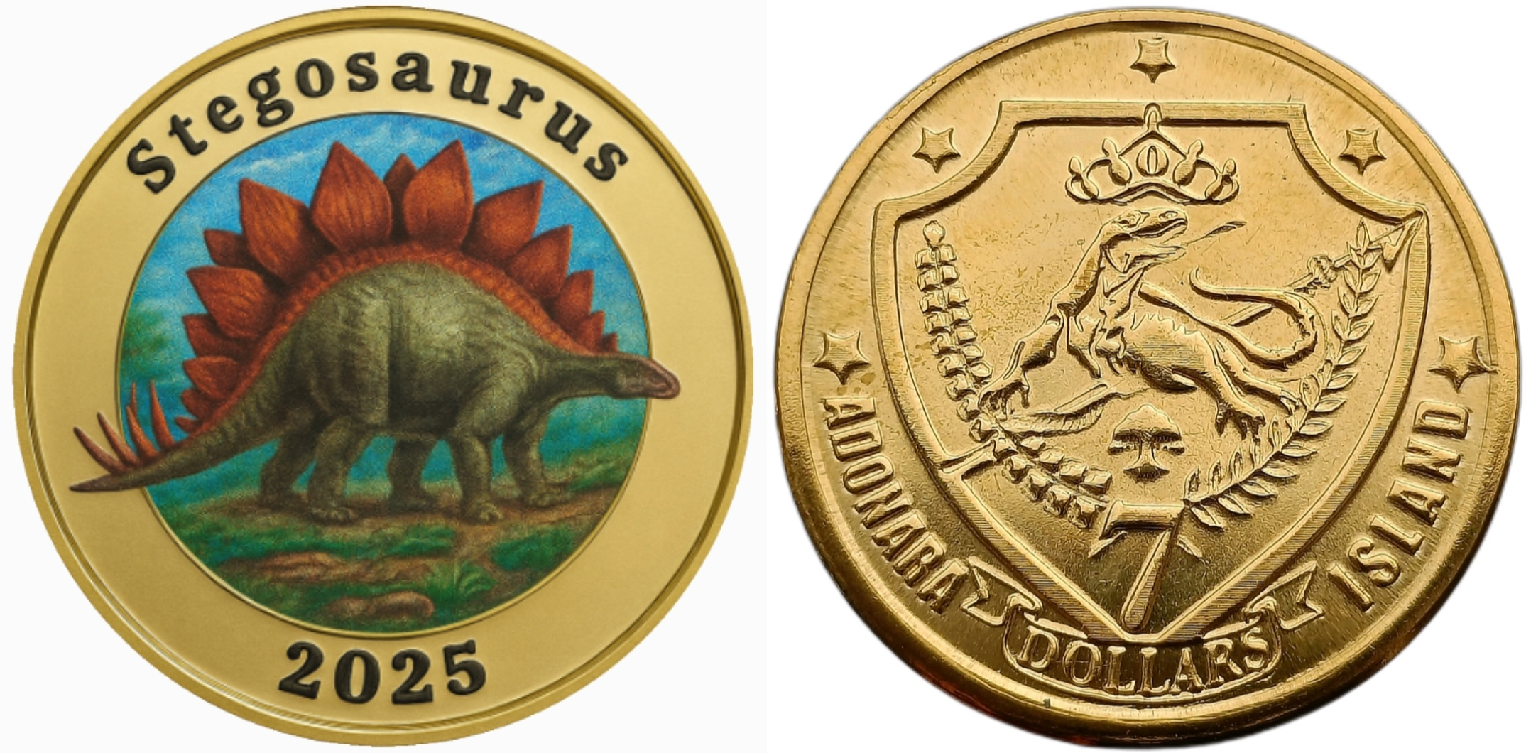 Приобретите уникальную сувенирную монету «Стегозавр» из коллекции острова Адонара! Создайте неповторимую коллекцию вместе с нами — это идеальный подарок для увлечённых нумизматов и любителей эпохи динозавров. Высокое качество изготовления подчеркнёт престиж владельца, а эксклюзивный дизайн станет предметом гордости. Коллекция обогатит знания о мире редких монет и удивительных существ прошлого.