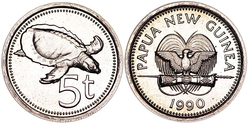 Редкая монета «Папуа – Новая Гвинея 5 тойя» (1975-1999) в отличном состоянииXF! Добавьте к своей коллекции уникальную черепаху, сохранив частичку истории экзотической страны. Эксклюзивный экземпляр для настоящих ценителей нумизматики! Повышает престиж вашей коллекции, отличный инвестиционный актив, сохраняющий ценность со временем. Отличное вложение средств и украшение вашего нумизматического собрания!