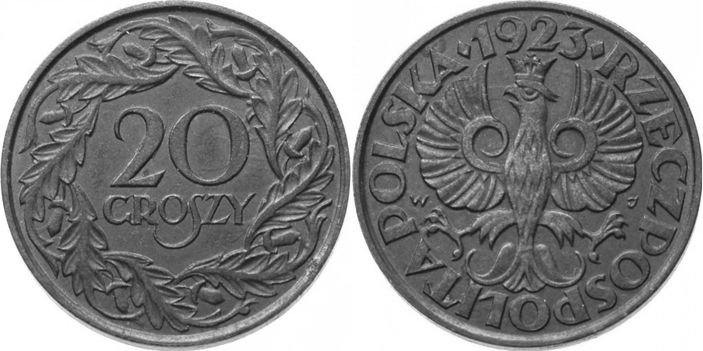 Польша 20 грошей, 1923 Цинк - Герб XF