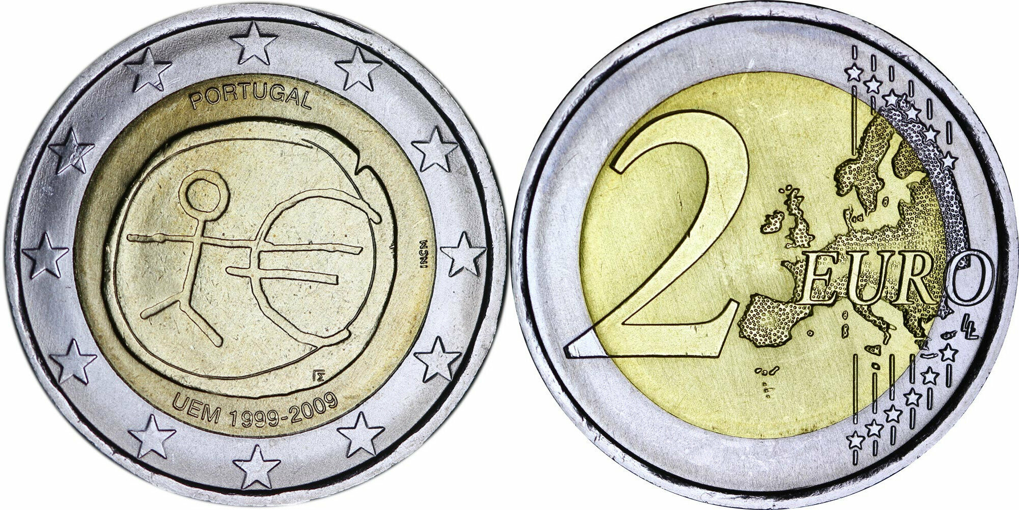 Португалия 2 евро, 2009 10 лет монетарной политики ЕС (EMU) и введения евро UNC