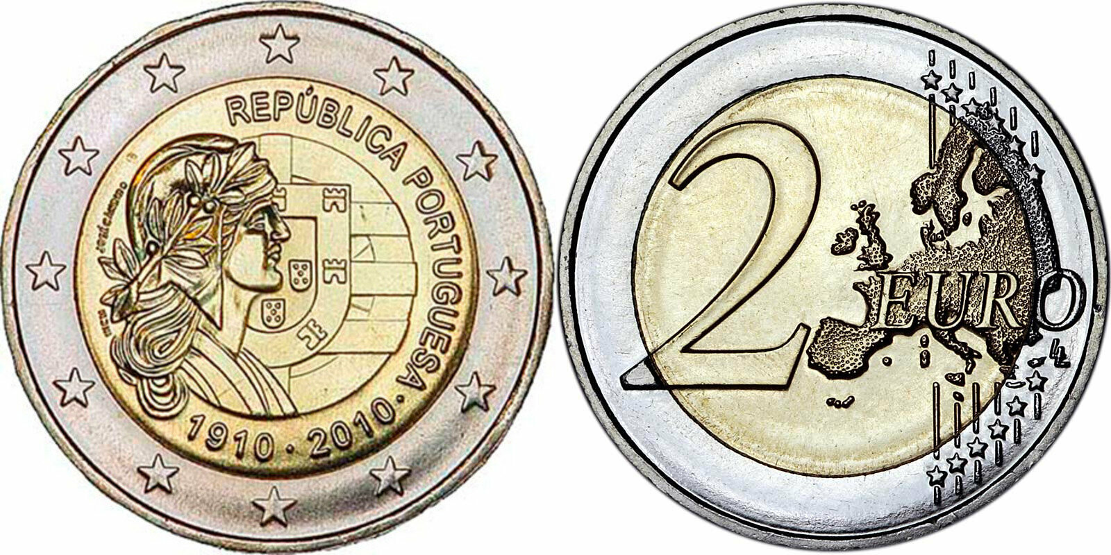 Португалия 2 евро, 2010 100 лет Португальской Республике UNC