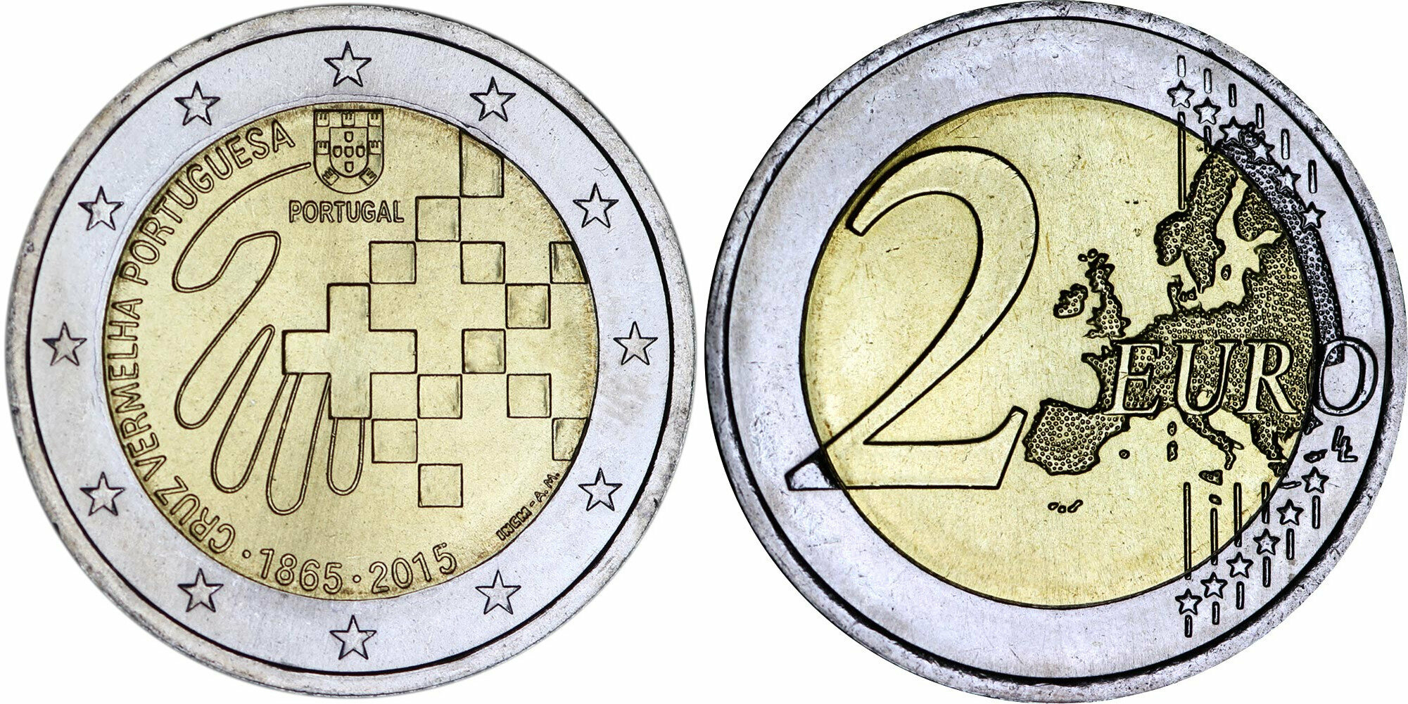 Португалия 2 евро, 2015 150 лет Португальскому Красному кресту aUNC