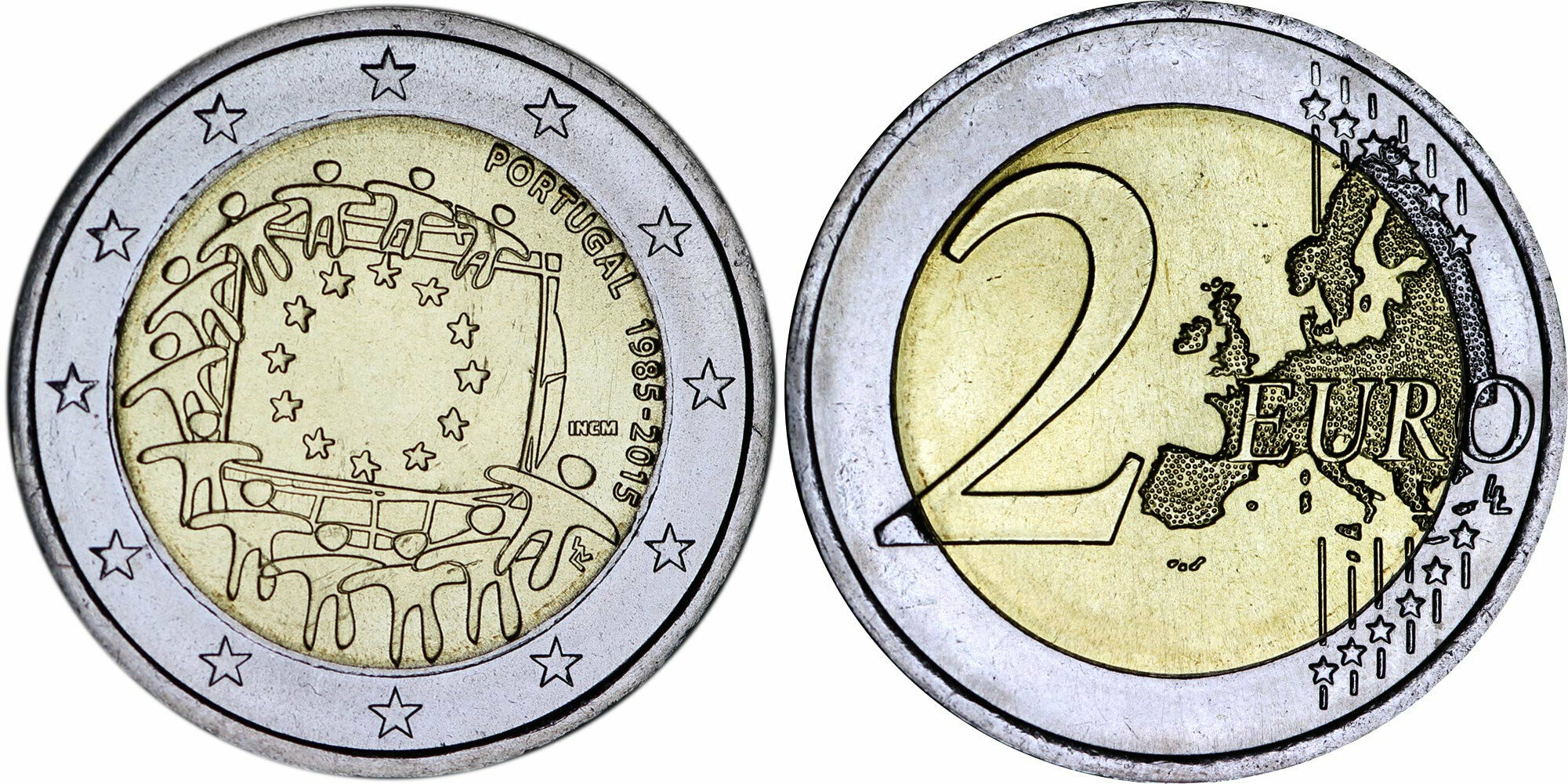 Португалия 2 евро, 2015 30 лет флагу Европейского союза aUNC