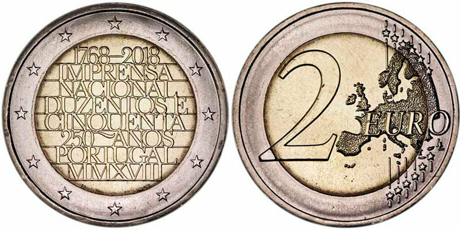 Португалия 2 евро, 2018 250 лет Imprensa Nacional-Casa da Moeda UNC