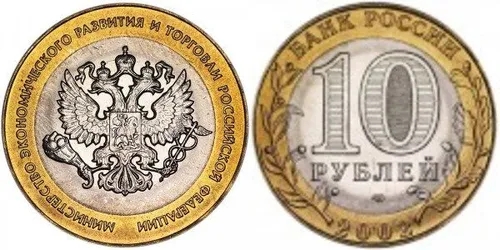 Редкая монета России 10 рублей 2002 года Министерства экономического развития – идеальный выбор для вашего нумизматического собрания! Уникальная возможность приобрести подлинную коллекционную монету по доступной цене. Отличное вложение средств и увлекательное хобби для ценителей истории и финансов. Присоединяйтесь к миру редких находок вместе с нами!
