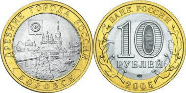 Россия 10 рублей, 2005 Боровск XF блеск