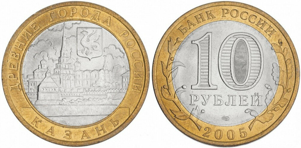 Россия 10 рублей, 2005 Казань XF