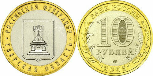 Россия 10 рублей, 2005 Тверская область XF блеск